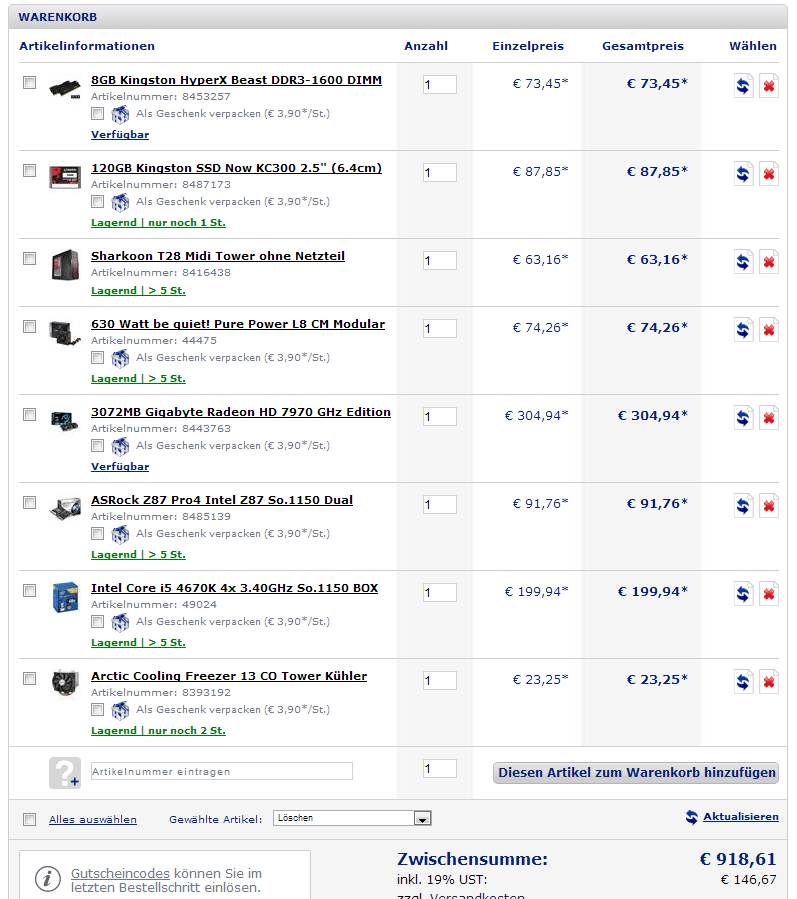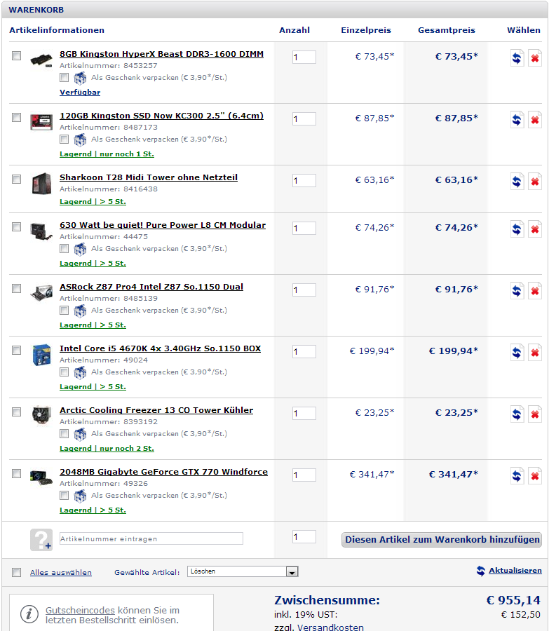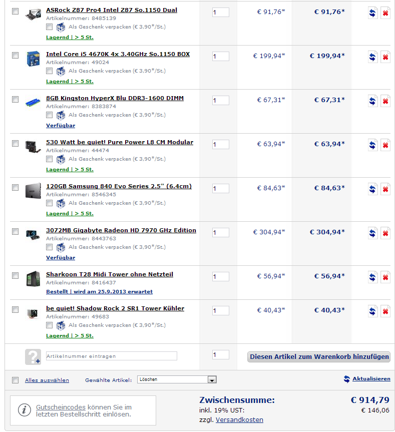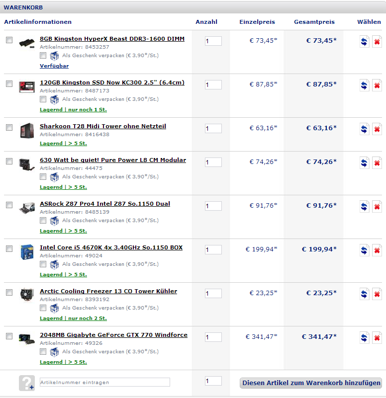 Ich poste hier einfach mal die Teile die ich mir schon rausgesucht habe, und bin fast komplett zufrieden mit allem. Nur bei der Graka bin ich mir unschlüssig.