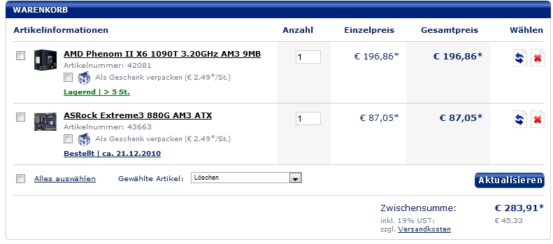 Dann brauch ich nur eine kurze Bestätigung, ob es sich bei dem 1090T Box um den Prozessor mit Lüfter/Kühler handelt. Denn auf Mindfactory gibt es noch die Tray Version, die ist allerdings (2€) billiger (O.o unlogisch).