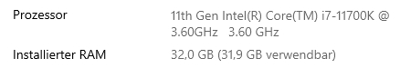 - Prozessor (CPU): i7 11400K