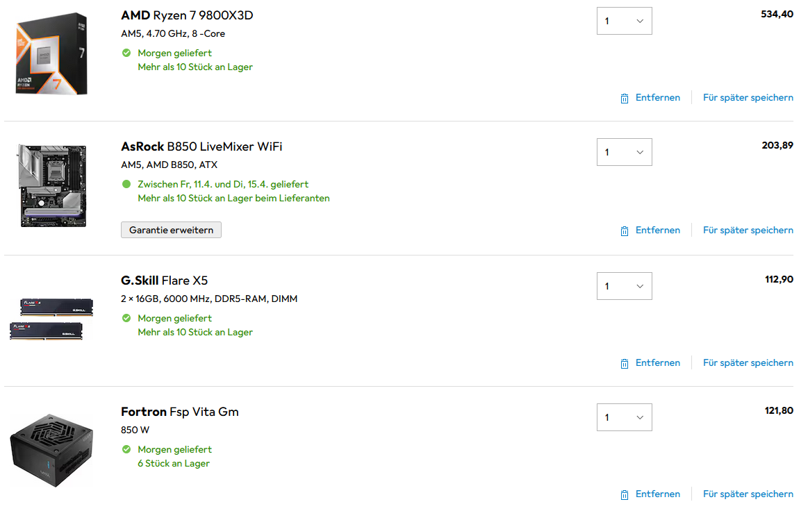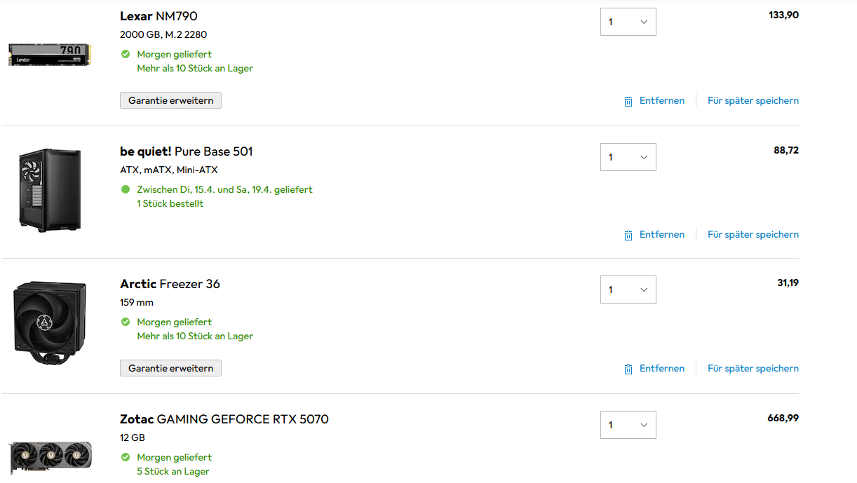 @Mapuu könnte in etwa dann so aussehen bei Galaxus und wären da laut Warenkorb bei knapp 1900€