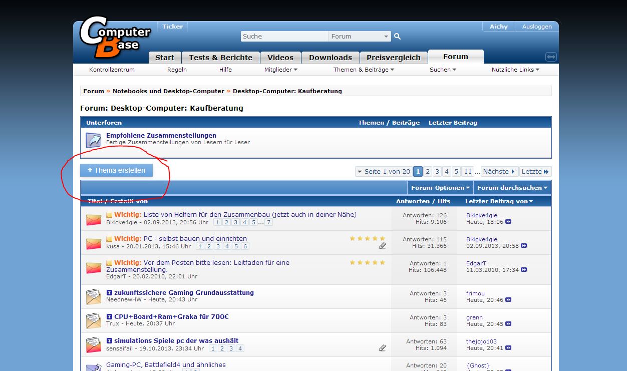kann mir bitte jmd sagen wie ich einen neuen thread offene