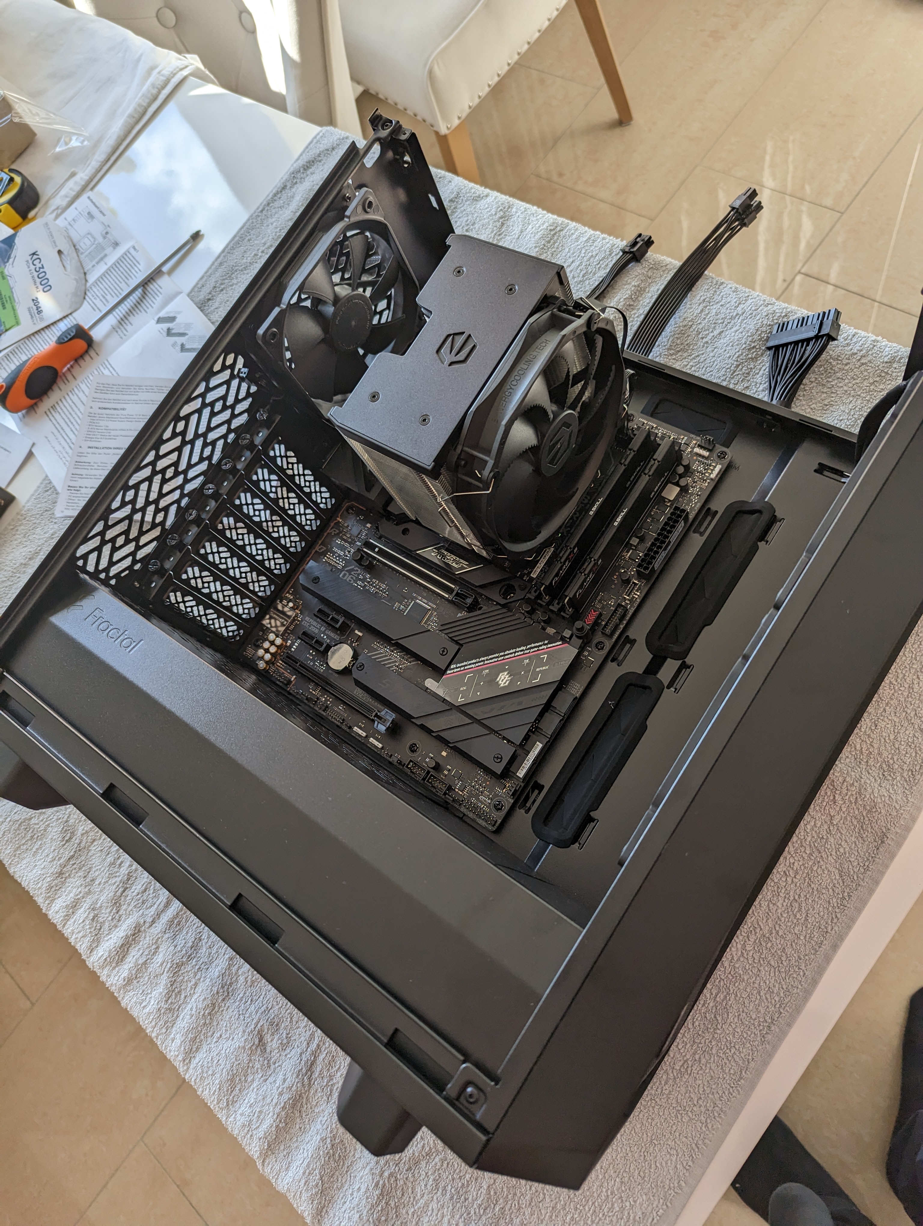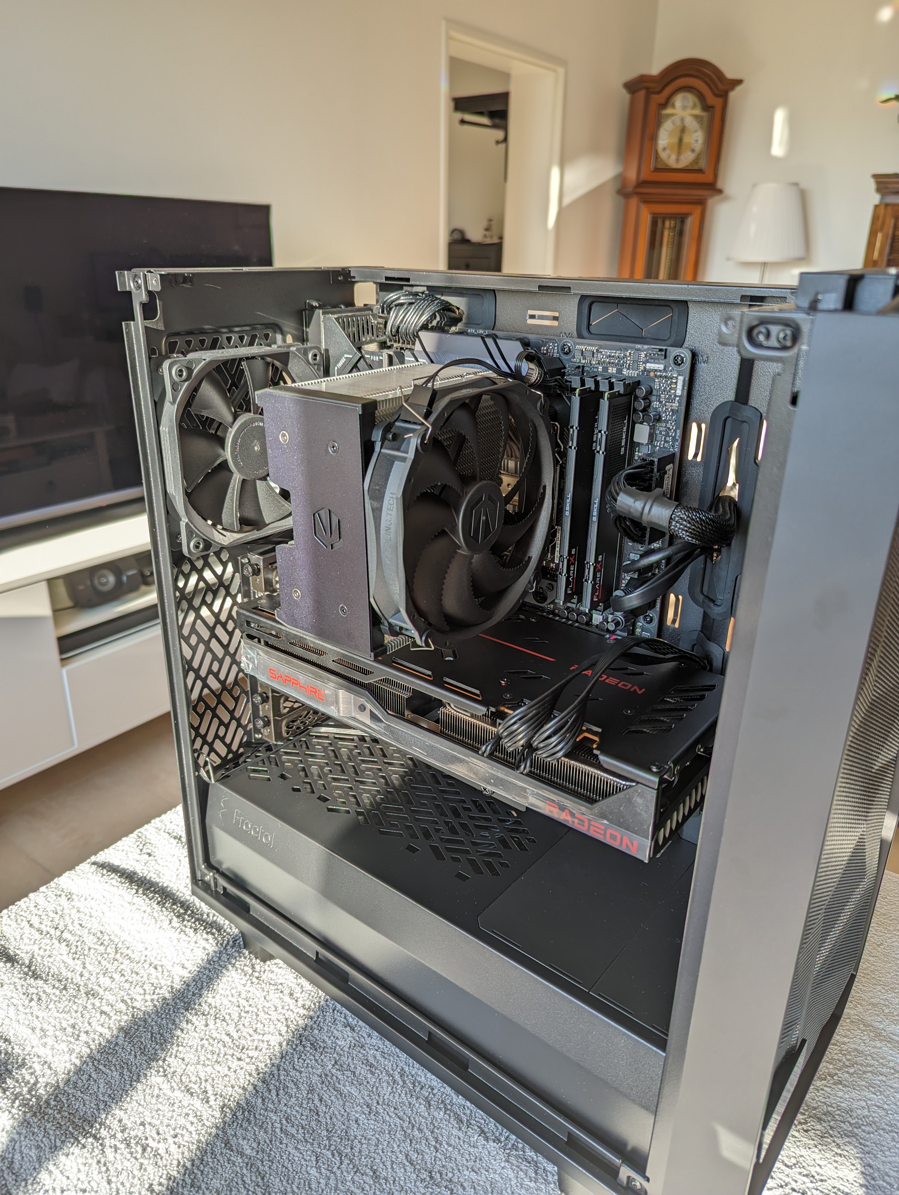 Abweichungen von der Empfehlung bei MB wegen BT, das ich manchmal brauche und WiFi für alle Fälle. Bei GPU habe ich nach einer Recherche mich für die neuere und sparsame/leise 4070 entschieden (statt 6800/6900XT) und sogar schon eine FE bei NBB bestellt (die ist vor ein paar Tagen dort wieder erschienen und ich habe zugegriffen, weil ich dachte, dass man immernoch auf die Drops warten muss