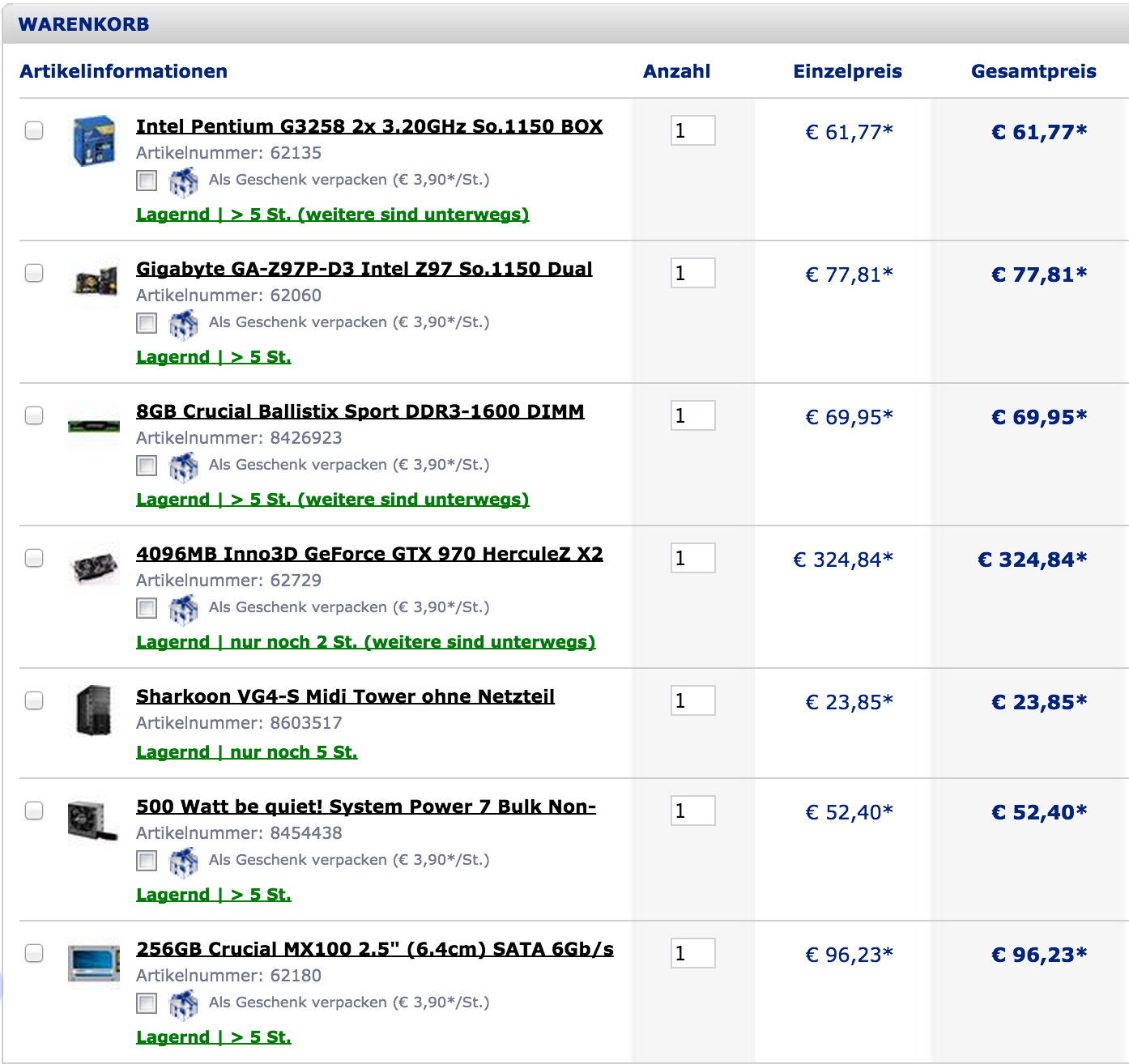 Zusammen übersteigt das etwas mein Budget, also was meint ihr wo kann man noch sparen, was sollte man austauschen/verbessern? Ich bin mir speziell beim Mainboard, Netzteil und Gehäuse unischer, der Rest ist soweit ok?