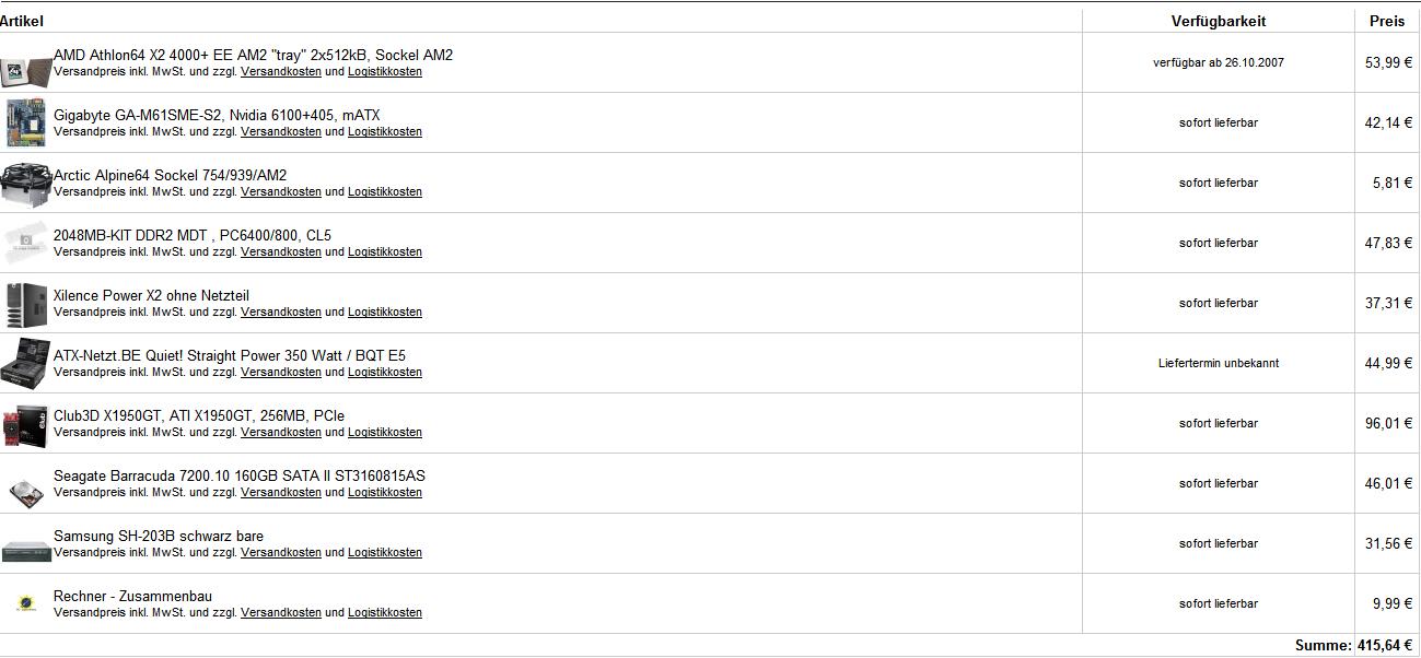 Also n ganz großes Dank an alle die versucht haben ein System für 400 Euro oder etwas drüber zusammenzustellen. Das ist die richtige Einstellung. So kommt man weiter.