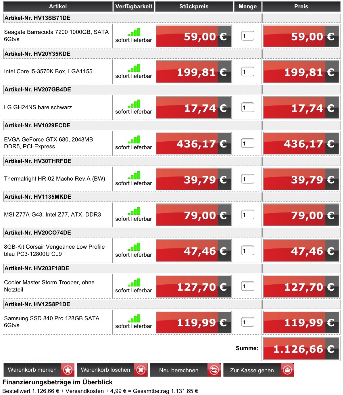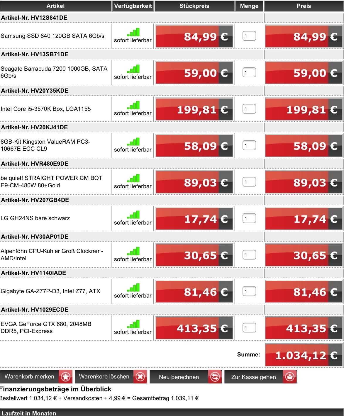 Wir würden natürlich alle Einzelteile kaufen und selber zusammenbauen oder wer sich das nicht zutraut vom Shop zusammenbauen lassen (das geht z.B. bei hardwareversand.de)