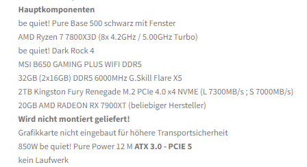 3. Hast du besondere Anforderungen oder Wünsche (Overclocking, ein besonders leiser PC, RGB-Beleuchtung, …)?