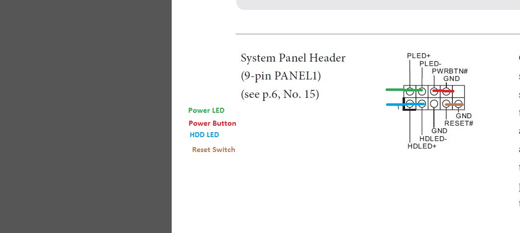 Mir fehlen diese Erdungen/GLDs immernoch. Das einzige, was jetzt noch aus der Richtung des Start-Knopfes kommt sind die folgenden: (HD Audio, AC '97, USB 3.0, USB,) Reset SW (2 kleine Stecker), Power SW (2 kleine Stecker).