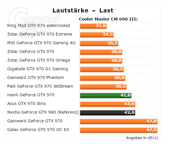 Bei den Sone-Werten siehts ähnlich aus. Da kommt die MSI auf 0,6 Sone und die Vapor-X auf 2,6 Sone.