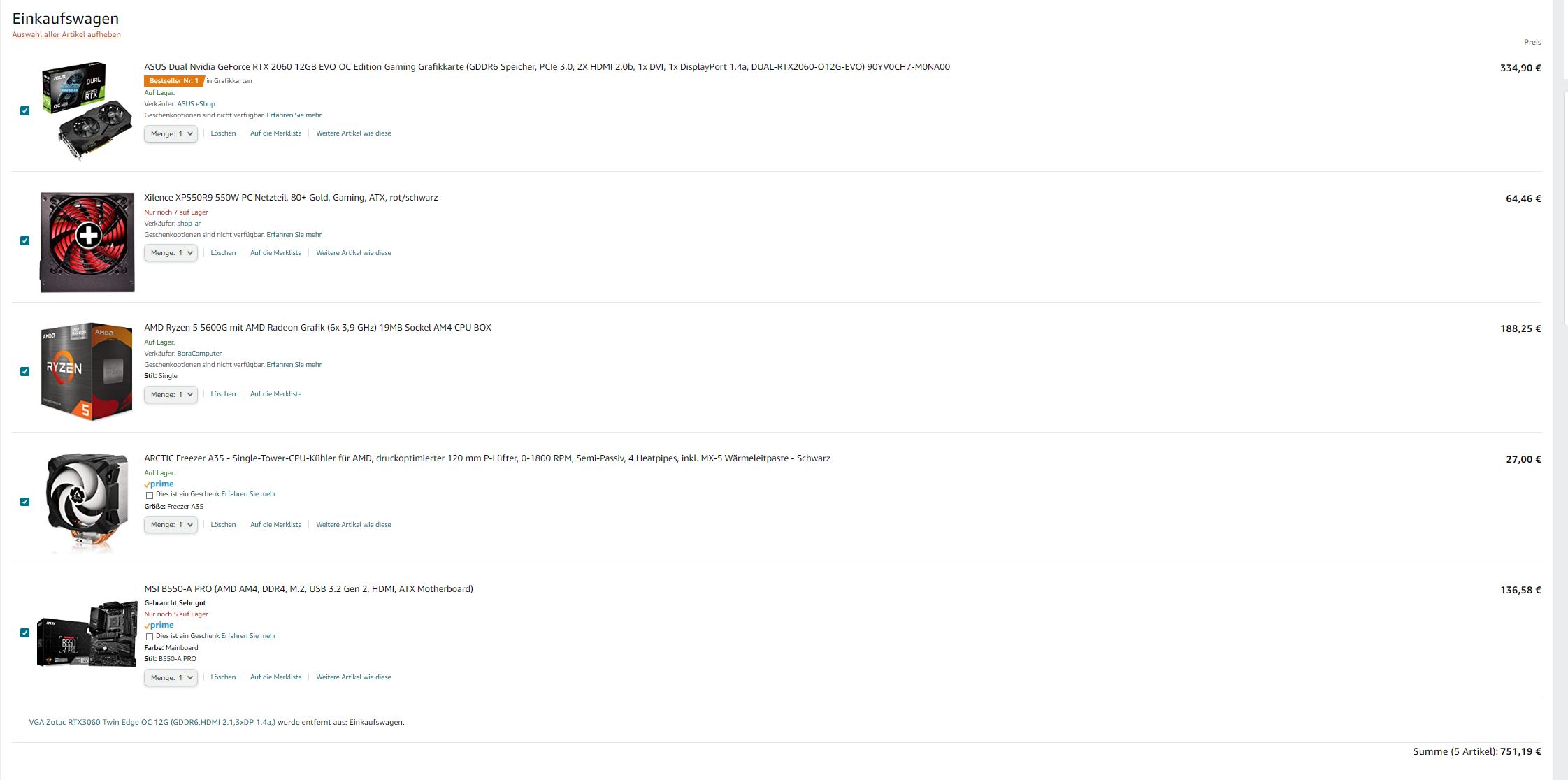 EDIT: ich sehe gerade, dass das Mainboard nur noch "Gebraucht / sehr gut" erhältlich ist. Wäre schön, wenn ich da ein vergleichbares neuwertiges auf Amazon finden würde. Da ich ja ausschließlich auf Amazon bestellen wollte!