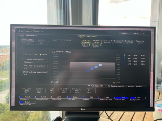 Ich hätte jetzt keine manuell angepassten Einstellungen bei den Fans gefunden. Scheint alles auf "Smart Fan" zu stehen. Dachtet ihr an etwas Spezielles?
