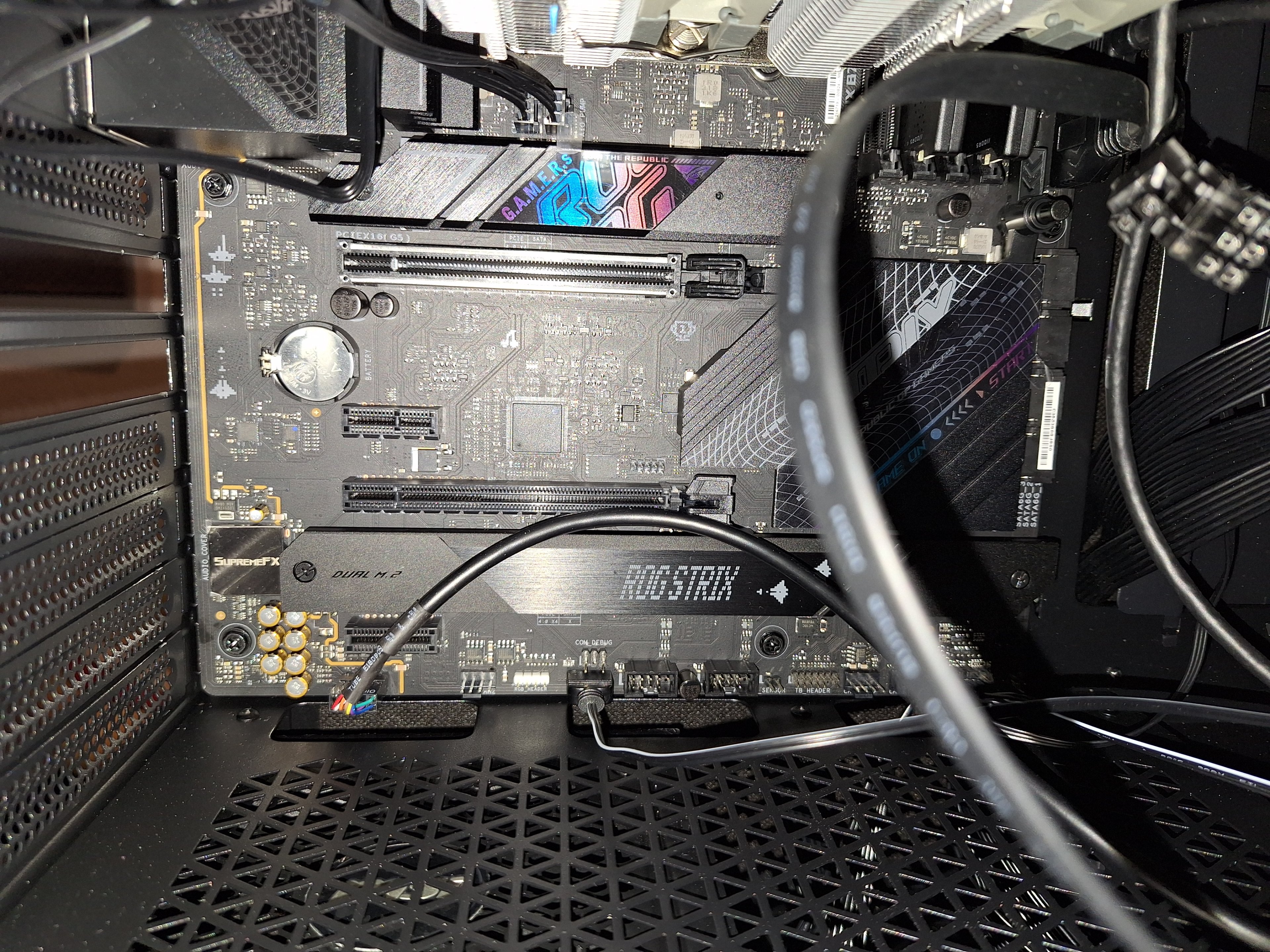 Und wenn die nvme(s) auch alle verschraubt sind, du die Grafikkarte eingebaut hast, bleibt nur noch die Verkabelung des Netzteils mit dem Stromstecker zur CPU, und dem breiteren Stecker ATX 24polig der seitlich sitzt.