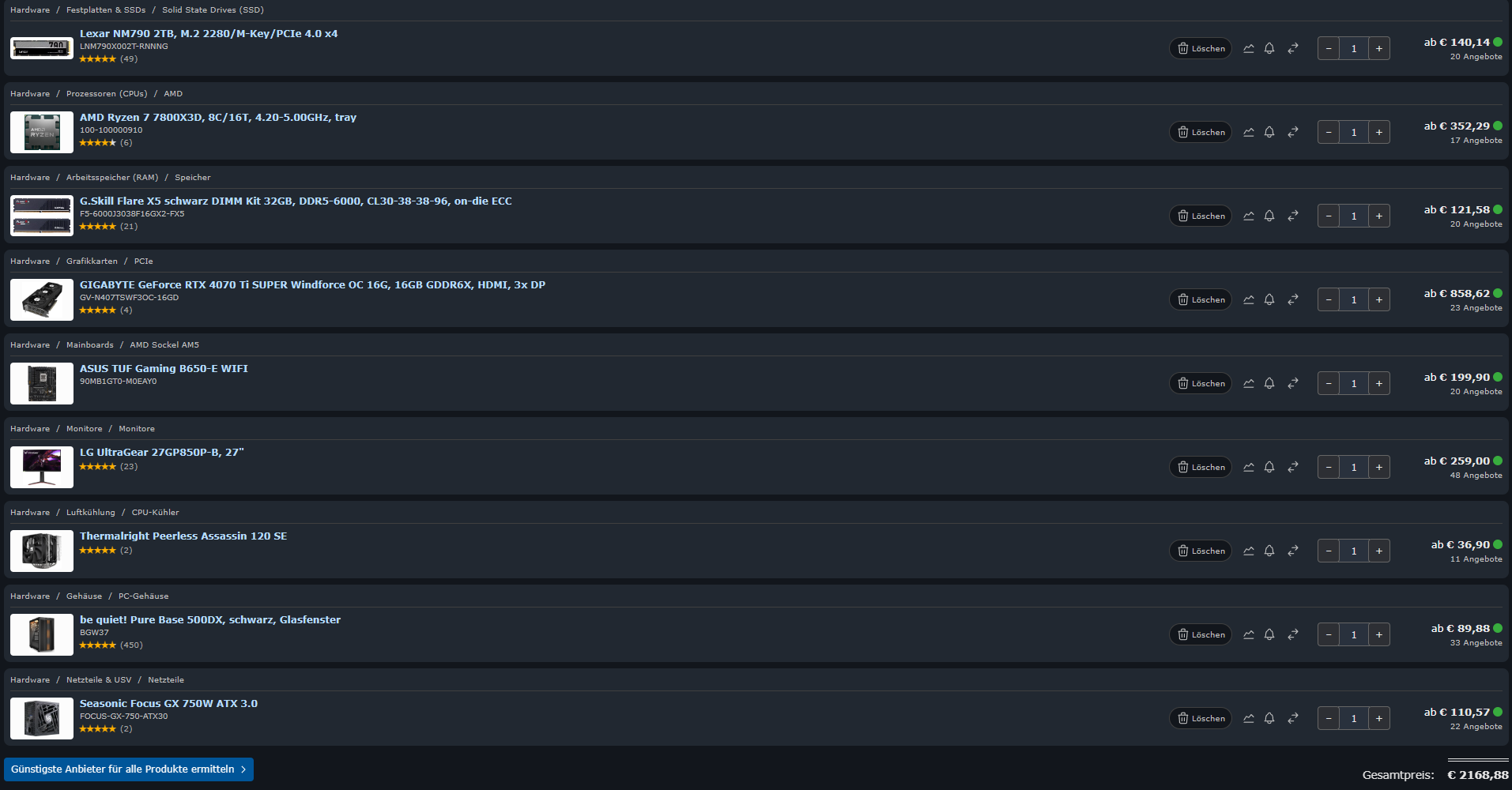 Ich möchte für einen Kollegen einen Gaming PC zusammenstellen, habe dafür schon die Hardware zusammengstellt. Wenn ihr bitte so Nett seit und drüberschauen würdet ob das so passt oder nicht.....Vielen Dank