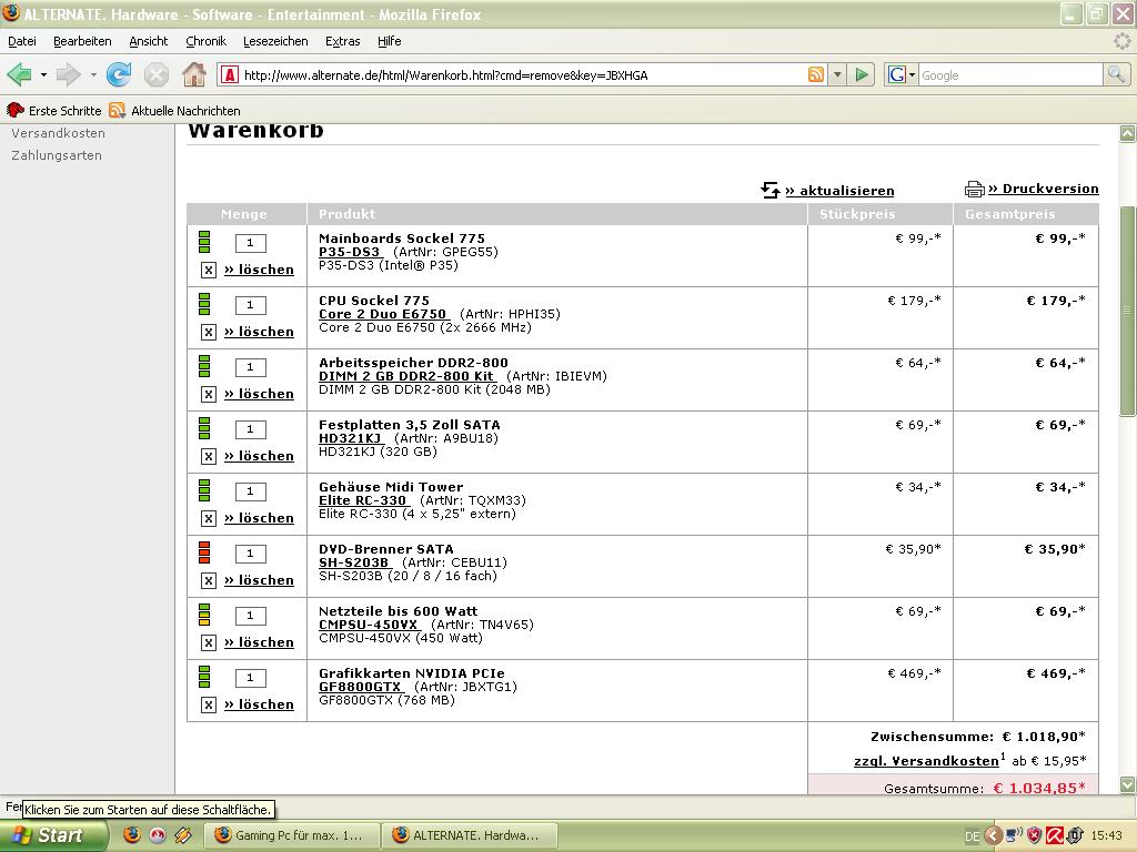 Maximal möchte er 1000€ ausgeben, bzw. stehen ihm diese komplett zur verfügung (versand etc. muss auch in die 1000€ mit reinfallen). Und die Bestellung soll bei Alternate erfolgen.