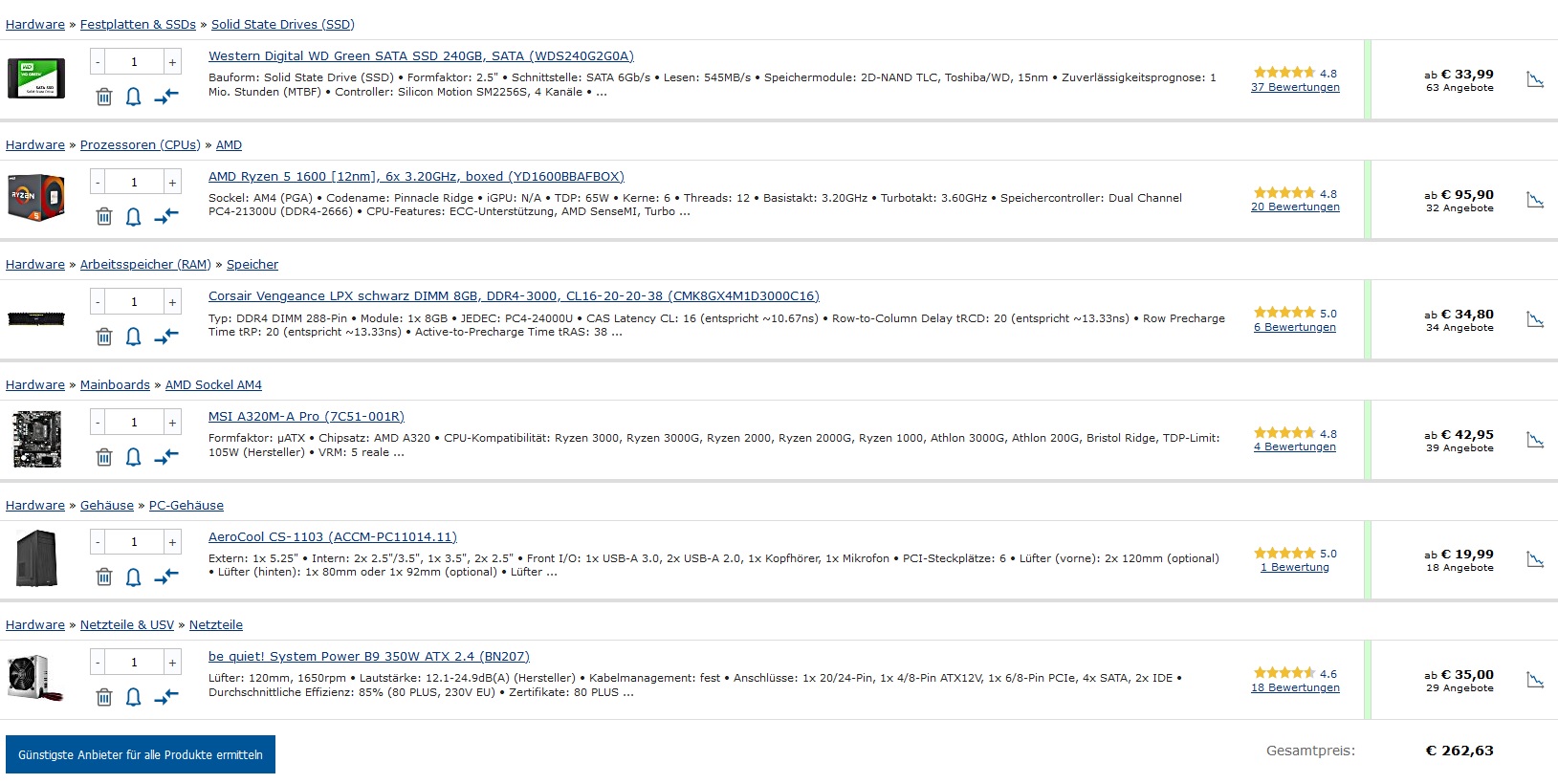 mein Sohn hat bald Geburtstag und möchte einen PC. Jetzt könnte ich natürlich in den Laden laufen und ihm einen Kaufen, aber wo bliebe da der Spaß wenn er ihn nicht selbst zusammen bauen muss und einfach fertig hingestellt bekommt?! :-)