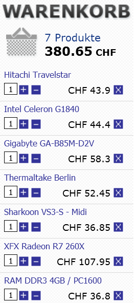 Fast alle Händler versenden das Case zusätzlichen zu den "normalen" Bauteilen und generieren so z.B. bei Nachnahme zusätzliche kosten, was besonders in deinem Fall ärgerlich wäre.
