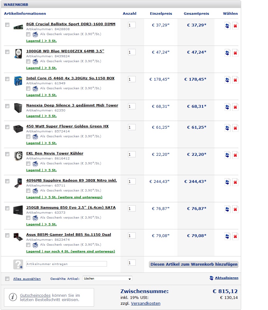 Nehmen wir an ich nehme die Zusammenstellung von "Tada100" (~ 820€:)