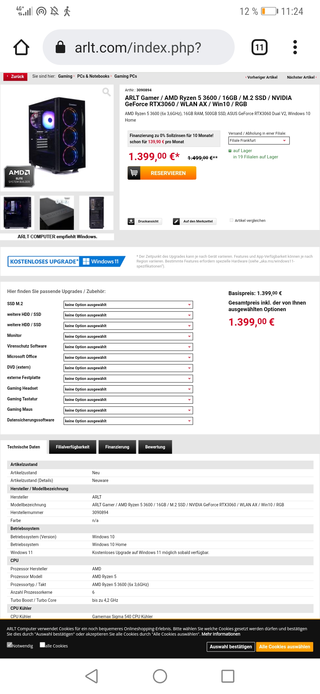 1400 und schaue gerade nur auf der ausgewählten ARLT Seite von Frankfurt da ich nicht bestellen kann
