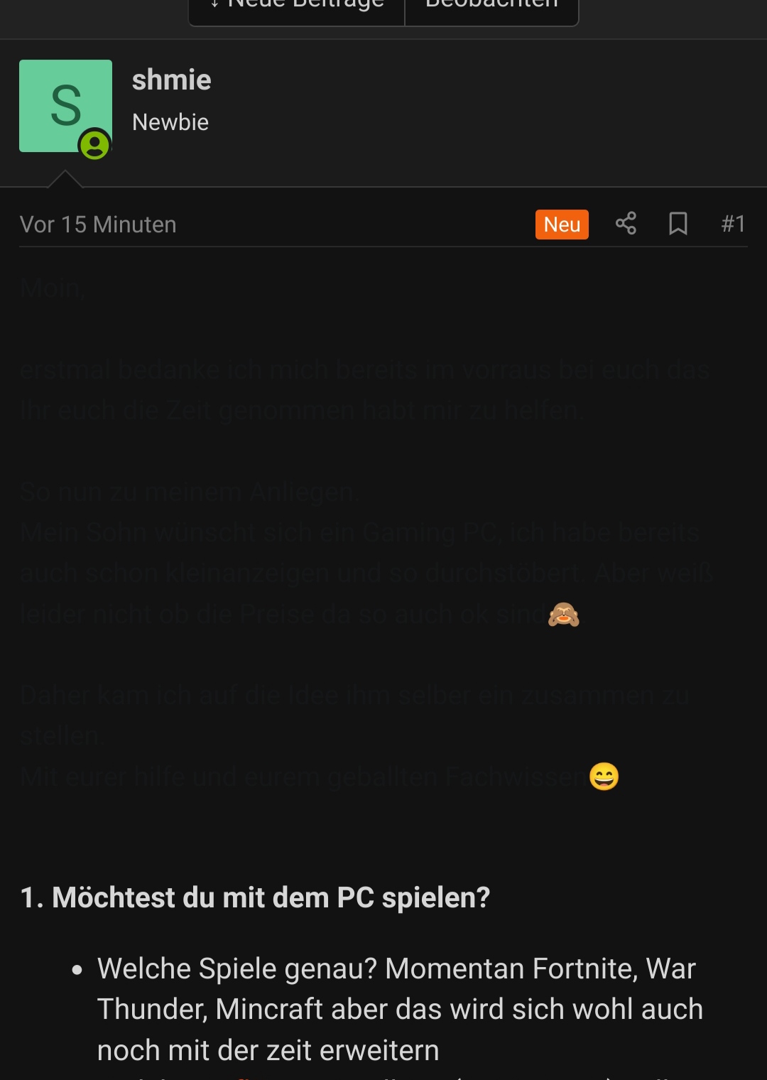 1. Möchtest du mit dem PC spielen?