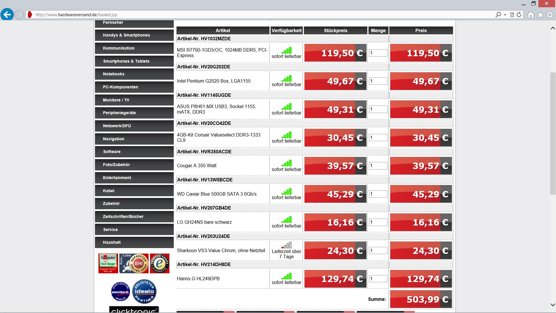 Fazit: die 500€ können komplett ins System gesteckt werden. Versand und Zusammenbau fällt weg, dadurch bleibt mehr Spielraum für die Komponenten.