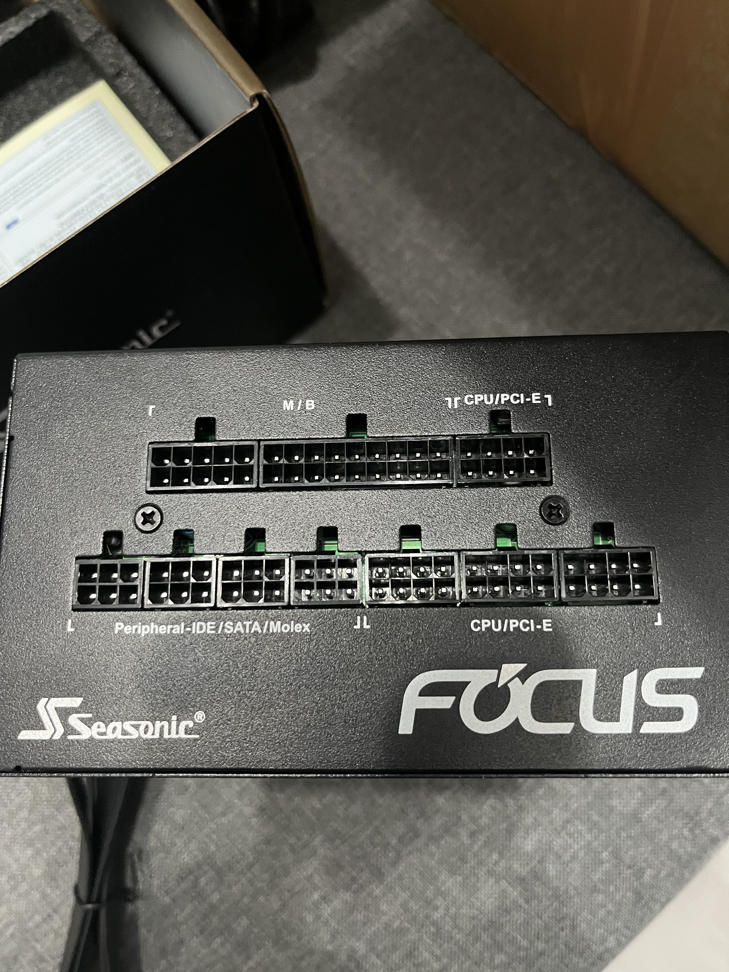 Das nächste Problem wird dann das Netzteil. Hierbei handelt es sich um ein Focus GX 650 Watt Modular. Das habe ich alles soweit eingebaut. Aber hier muss ich noch schauen, welche Kabel ich benötige.
