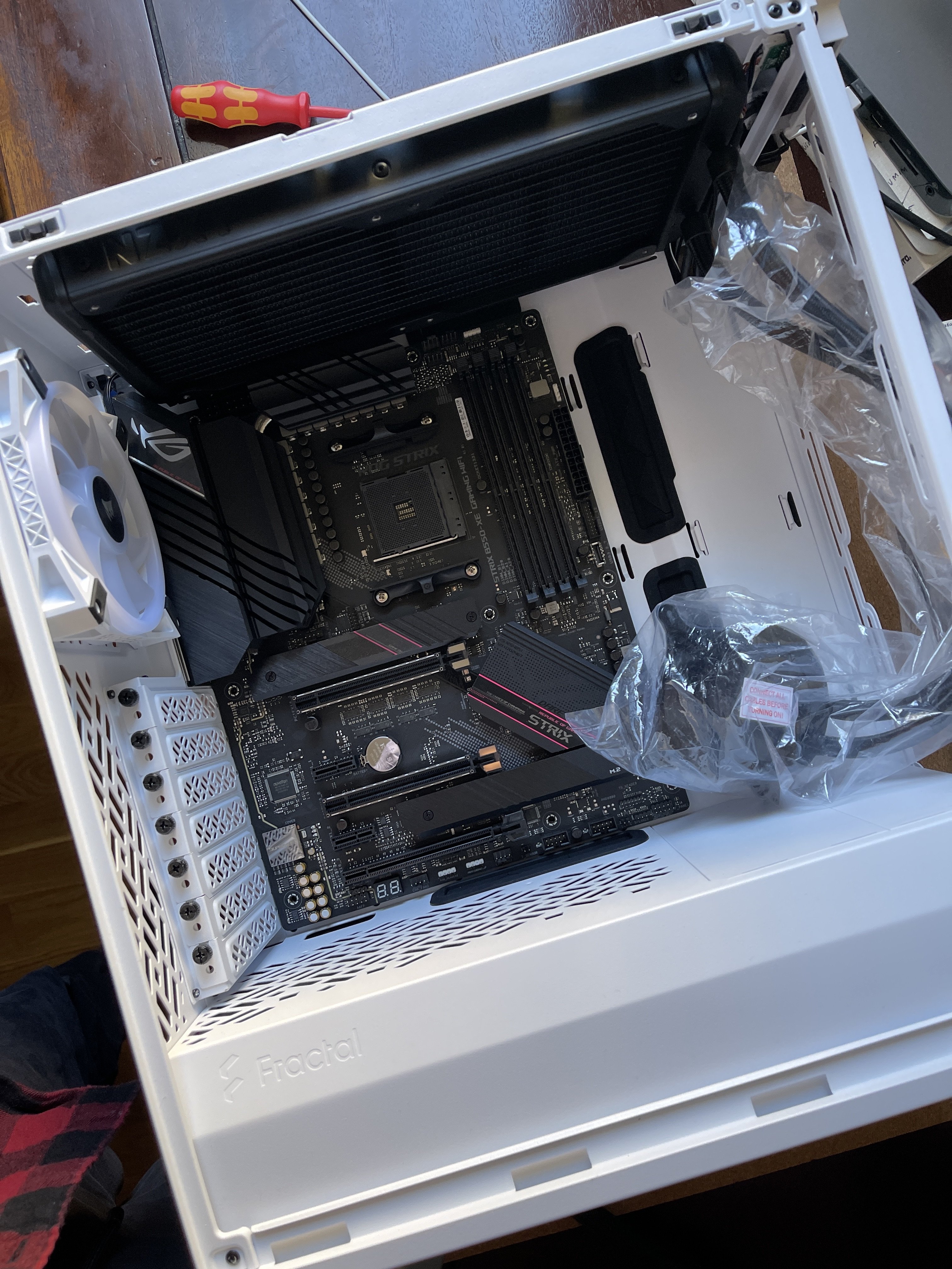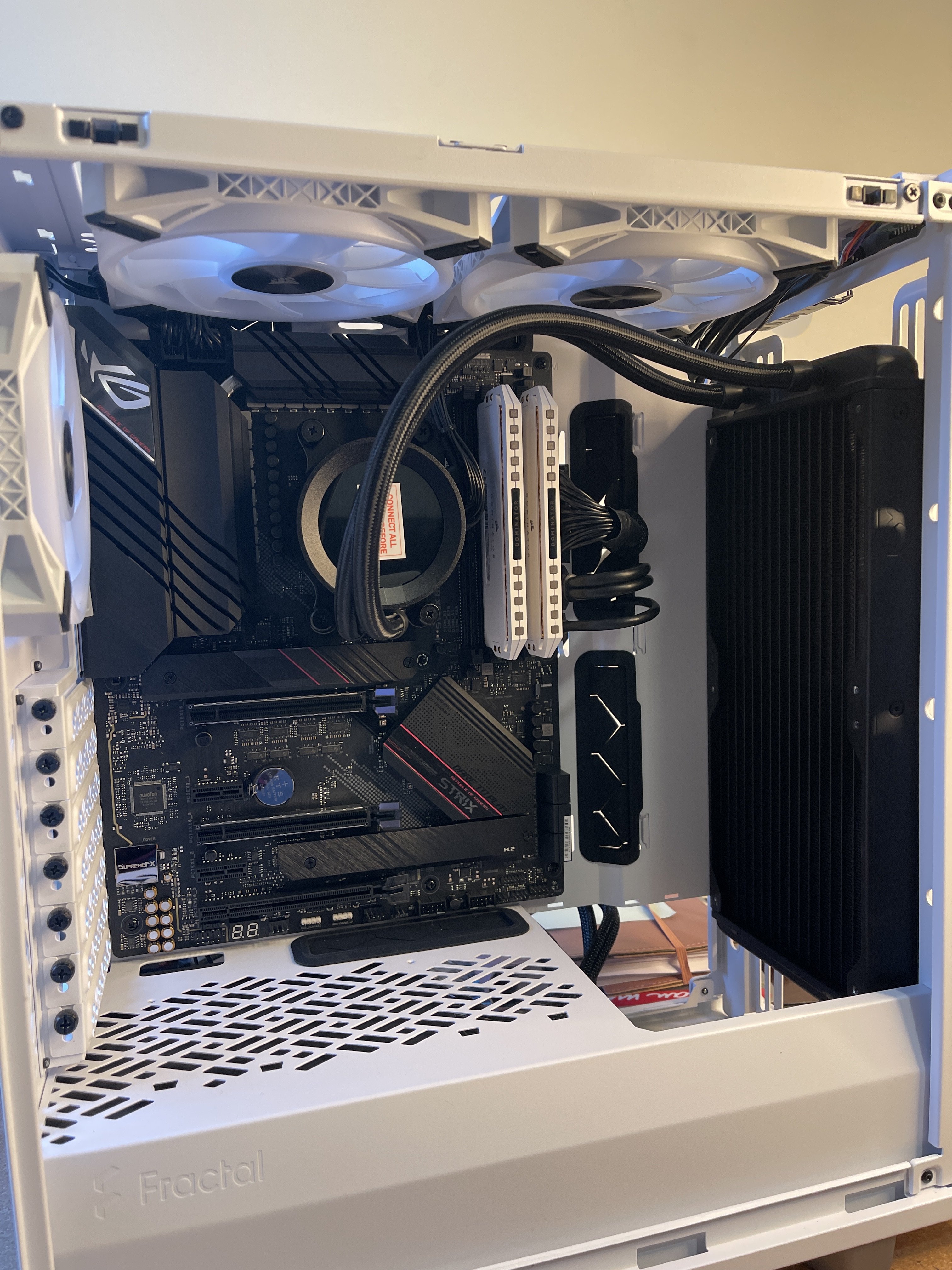 Hallo Freunde. Ich bin gerade dabei mit meinem Sohn ein Gaming PC aufzubauen. Leider habe ich ein Problem mit dem Platz in meinem Define 7 Compact mit Kraken Z63 und Asus RTX3090 Strix. Einzige Möglichkeit wäre die Lüfter so anzubringen um den Prozessor zu kühlen. Denkt ihr dass das möglich ist auch wenn die Frontklappe vorne montiert ist. Seitlich gibt es ja Lüftungsschlitze. Danke für eure Hilfe. Stefan