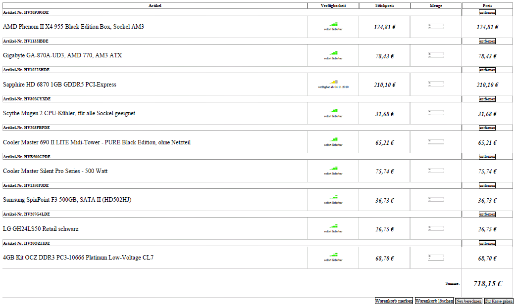Die Version für 800 Euro fiel mir dabei ins Auge. Ich möchte die Zusammenstellung + Zusammenbau bei Hardwareversand erledigen. Problem ist nur, dass ich bei den einzelnen Komponenten überhaupt nicht mehr durchblicke, da sie scheinbar teilweise nicht verfügbar sind oder anders benannt sind.