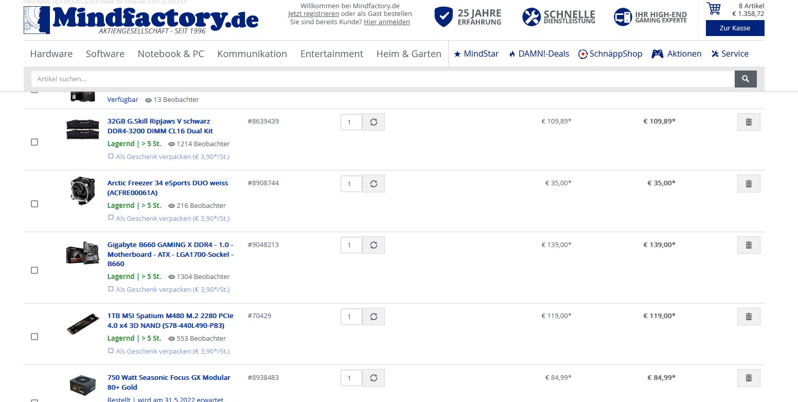 Betrifft bei der aktuellen Zusammenstellung SSD, CPU-Kühler und MB, wenn ich den Warenkorb in einem frischen Browser öffne komme ich auch auf einen höheren Betrag.