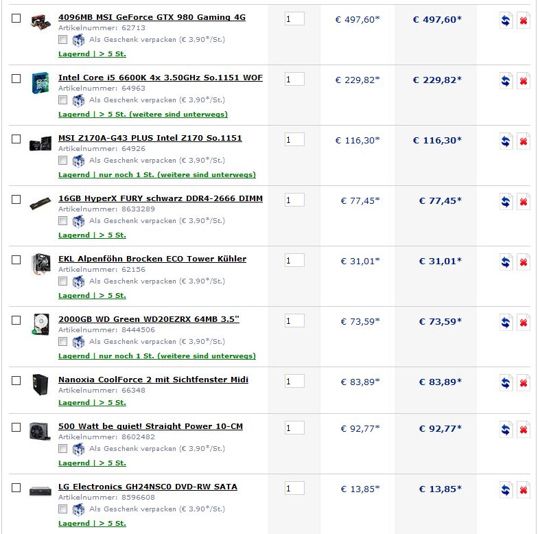 ich bin gerade dabei einen PC zusammen zu stellen und habe bisher folgende Sachen rausgesucht (Siehe Anhang)