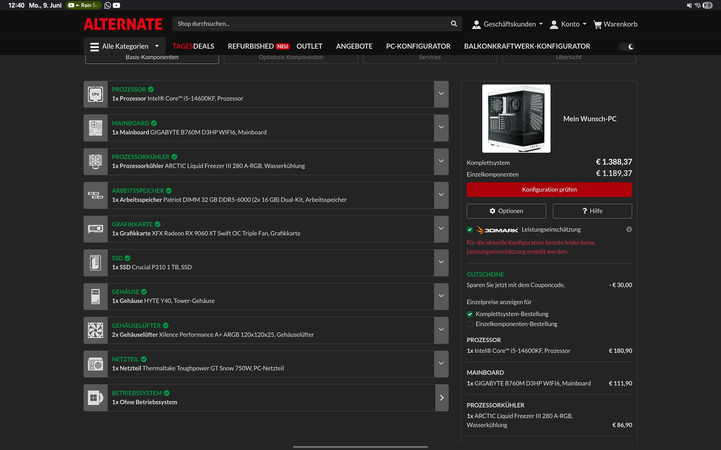 So wie der PC auf den Screenshots ist soll er aussehen. Er legt Wert auf Optik. Ebenso soll das Teil zusammengebaut ankommen. Also inkl. Zusammenbau 1400€. Er möchte es zusammenbauen lassen, da er somit auf das gesamte System inkl zusammenbau Garantie hat.