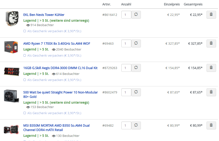 Der PC soll aber trotzdem schon zukunftssicher ausgelegt sein, ein Ryzen 1700 darfs schon sein, gegen Intel hab ich auch nichts.
