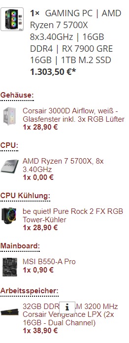- RGB Beleuchtung im Gehäuse und Ggf. im CPU Kühler