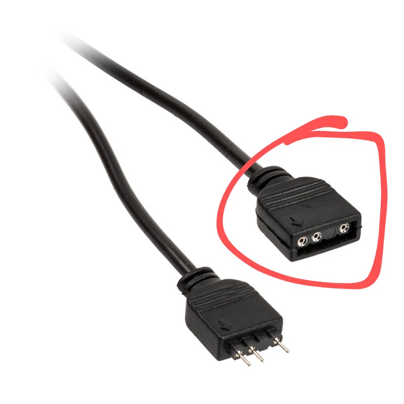 Jupp. Aber der Stecker den du auf dem Foto in der Hand hast ist ein 4-Pin-Lüfter-Stecker. Die 3-Pin-ARGB-Stecker die da hin gehören sehen so aus:Fabio89 schrieb:Ist das nicht hier die 2?