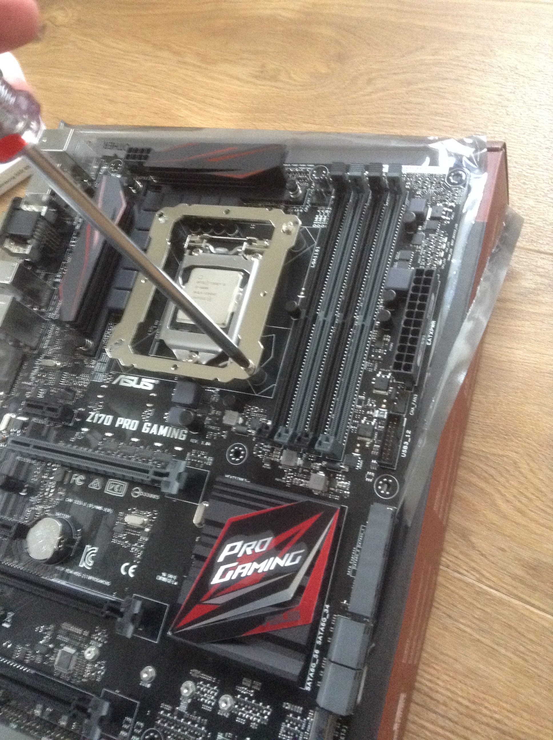 Nach dem Neustart wurde die Grafikkarte nicht mehr erkannt! Eigentlich wollte ich nur die Windows Installation laufen lassen, und mir einen vergnüglichen Sonntag gönnen, aber daraus wurde nichts. Doch hier blieb der Bildschirm erstmal schwarz. Auf dem Mainboard leuchtete auch eine entsprechende VGA-LED in rot… schwer zu finden bei all den roten LEDs des Asus Pro Gaming Boards.