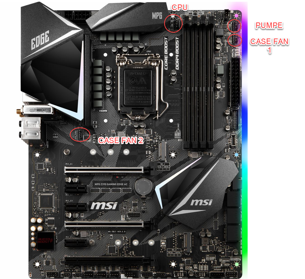PUMP_FAN 1 sollte eigentlich der 3 PIN der WassePumpe angeschlossen damit konstant 12V.