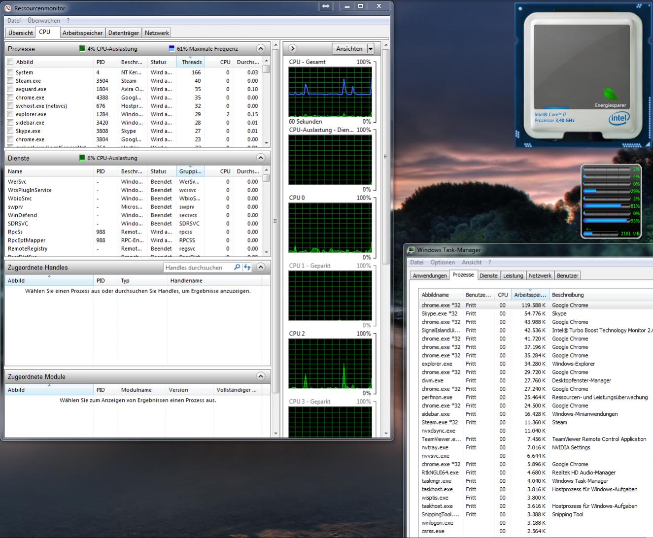 -Ich habe auch alle Prozesse und Tasks genau nach ihrer Auslastung kontrolliert aber nichts ungewöhnliches festgestellt!