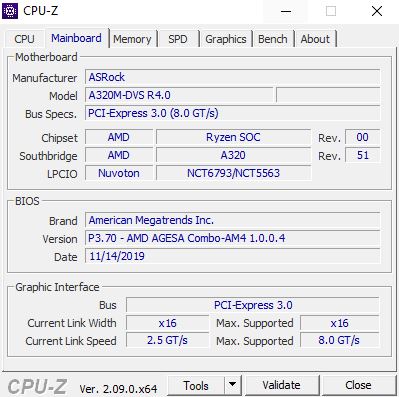 - Mainboard: ASRock A 320M-DVS R4.0 (https://www.asrock.com/mb/AMD/A320M-DVS R4.0/index.de.asp)