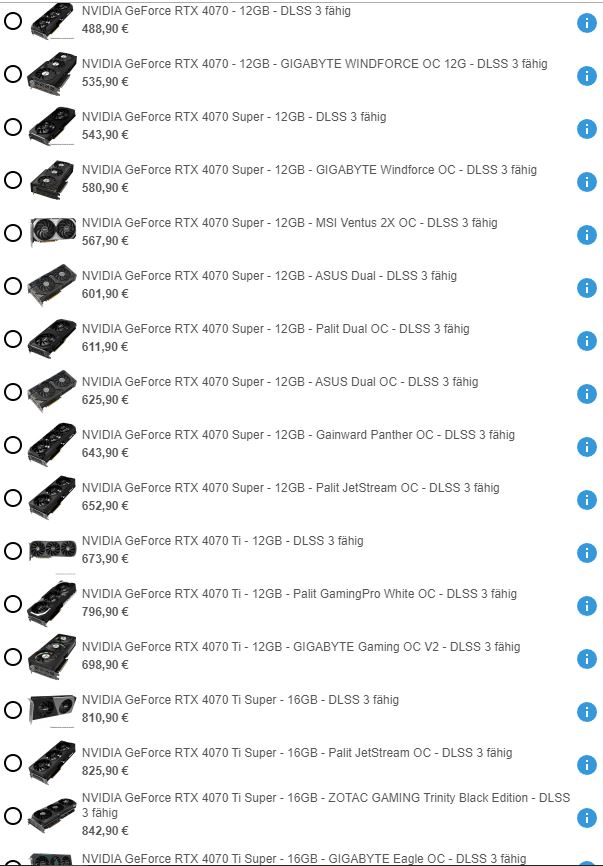 Da bin ich beim vergleichen auf die Radeon RX 7900 XT und Radeon RX 7900 GRE gestoßen (Nvidia hatte ich nicht unter die Lupe genommen, mir wurde gesagt diese seien nur unnötig teuer)