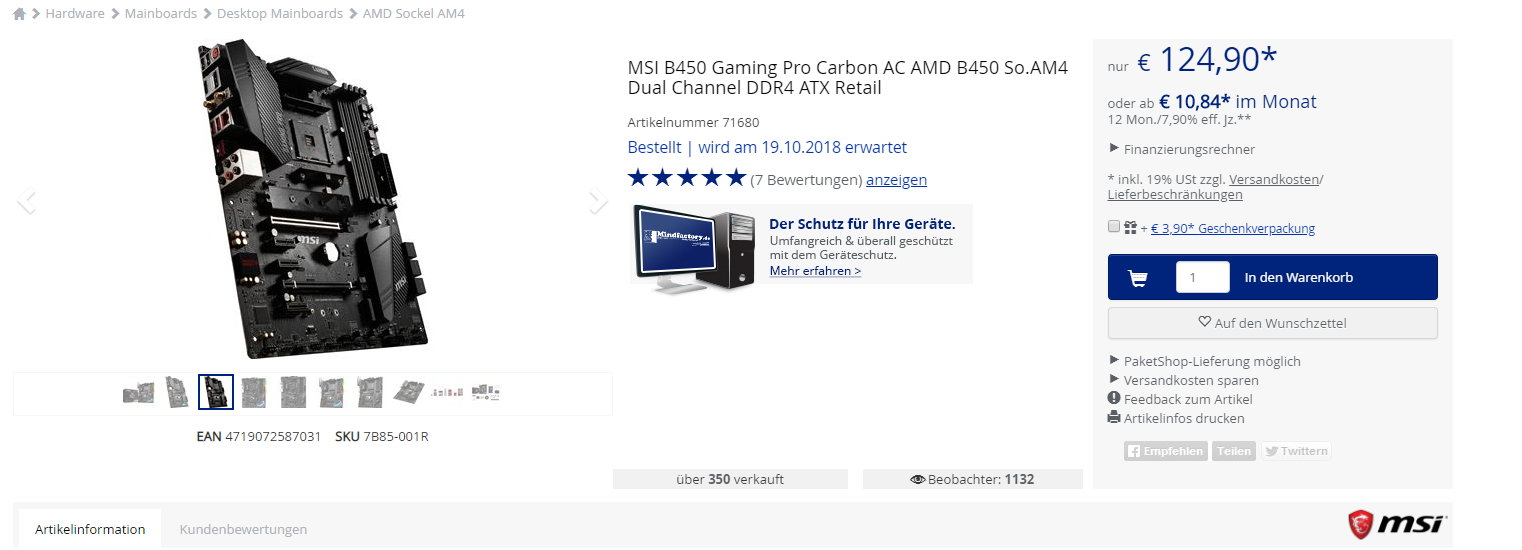 Hat die beste Bewertung für b450 Mainboards auf Mindfactory und es ist im lager