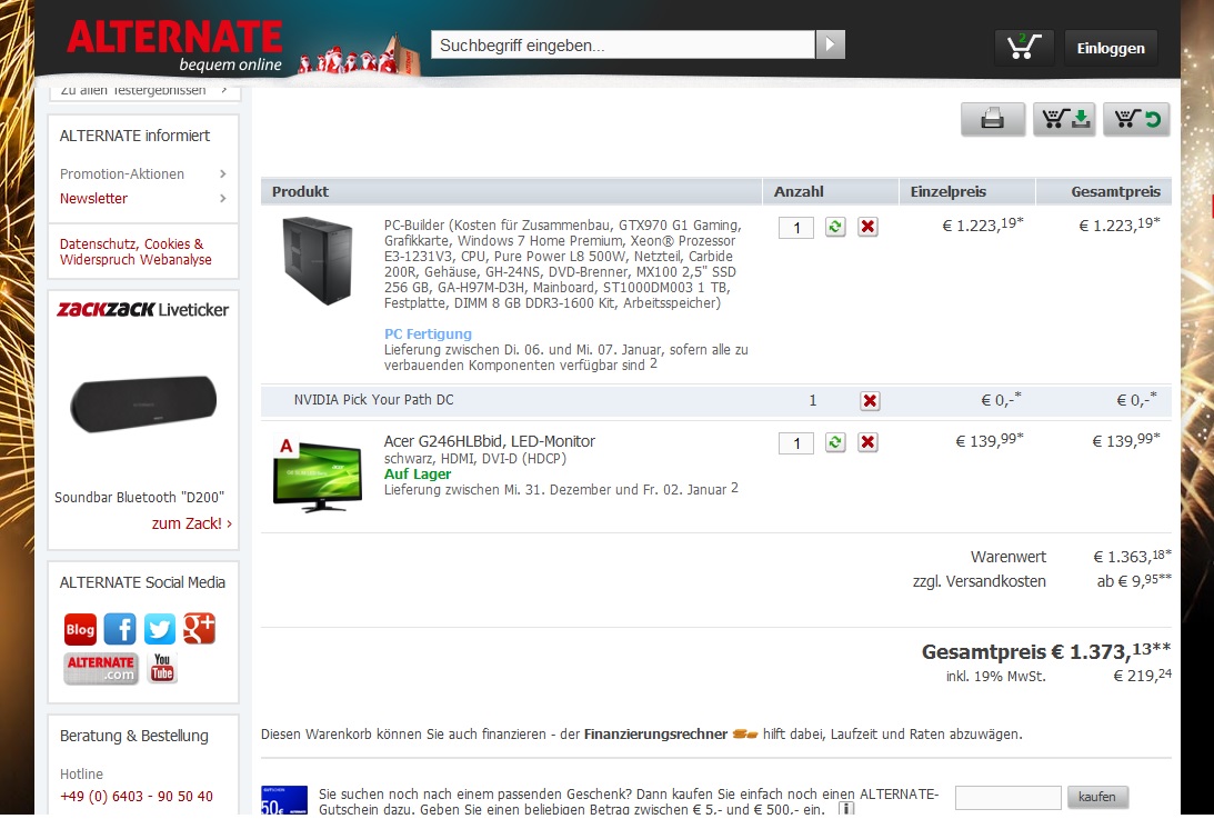 und bei alternate kannst auch zusammen bauen lassen.