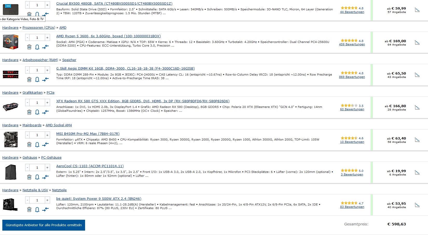 5. Hast du noch einen alten PC, dessen Komponenten teilweise weitergenutzt werden könnten? (Bitte mit Links zu den Spezifikationen beim Hersteller oder Preisvergleich!)