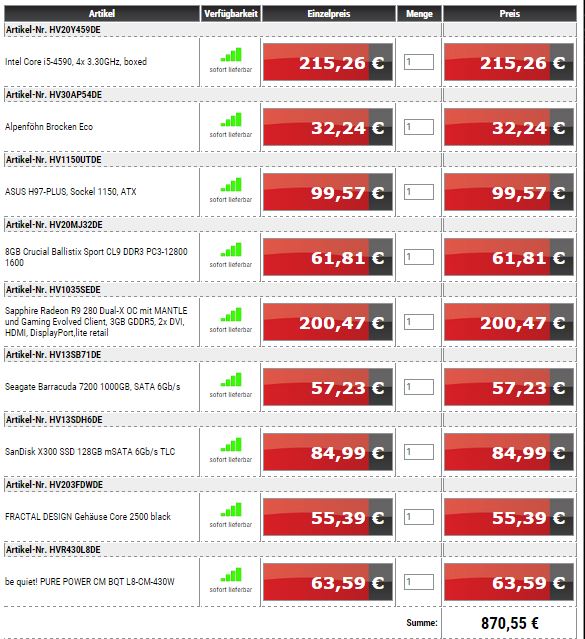 das hier ist mein erster Beitrag also seit nicht so hart wenn das in der falschen Kategorie ist. Ich war heute bei einem Computer- Händler und habe ihn gefragt, ob er mir einen Computer zusammenstellen kann, der hauptsächlich für Spiele genutzt wird und aktuelle Spiele und die der kommenden Jahre flüssig und mit möglichst hohen Einstellungen zusammenstellen kann und der maximal 800 Euro kostet. Er hat mir folgendes angeboten: