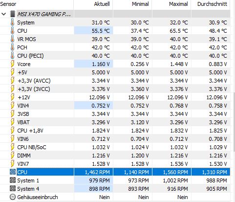 auf dem screenshot keine nennenswerte schwankung bei den gehĂ€uselĂŒftern. lenkt den verdacht auf den (mMn viel zu schnell laufenden) CPU-lĂŒfter.