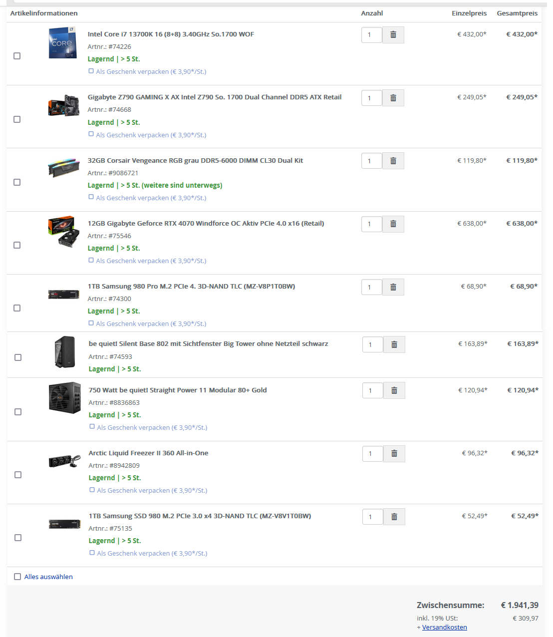 - Gehäuse: Antec Twelve Hundred V3 (zu alt und unpraktisch)