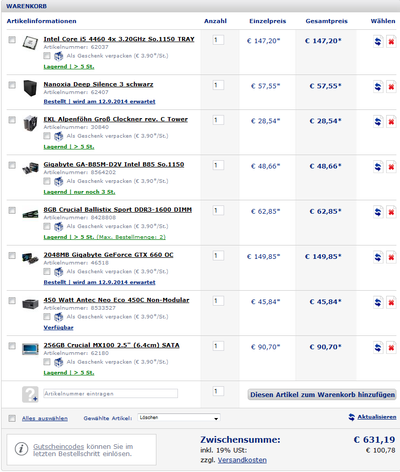 Ich stelle gerade einen Rechner für meine Cousine zusammen und wollte Euch mal fragen, was ihr von der Zusammenstellung so haltet, da ich schon recht lange aus der Hardware-Welt raus bin und mich so langsam erst wieder eingewöhne...