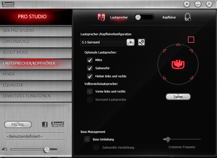 Hab erstmal Youtube Songs laufen lassen und im Soundblaster Command Center rumgespielt. Lässt sich ja einiges einstellen. Dann hab ich gesehen das man bei das sogenannte SBX Pro Studio aktivieren kann --> Und schon hat man ordentlichen Bass und nochmal ne ecke klareren Sound auf den Lautsprechern, klingt gut!