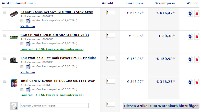 An sich würde ich bei dem Budget auch zu Haswell-E raten, aber das du schon ein Z170 Board hast (könnte man aber ggf. wieder verkaufen), würde ich, statt der i5-6600K CPU, eher zur i7-6700K tendieren. Dazu als CPU Kühler den Noctua NH-U14S.