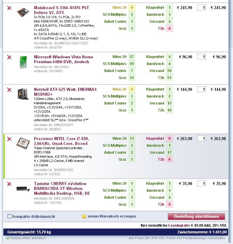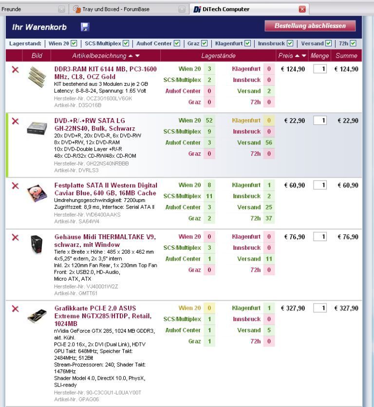 Mein Budget läge bei ±1600, 1700 würde auch noch gehen. Bitte die Artikel nur von diesem Shop vorschlagen: http://www.ditech.at, da ich dort den PC finanzieren werde und würde eben gerne wissen, wieviel genau das Kosten wird.