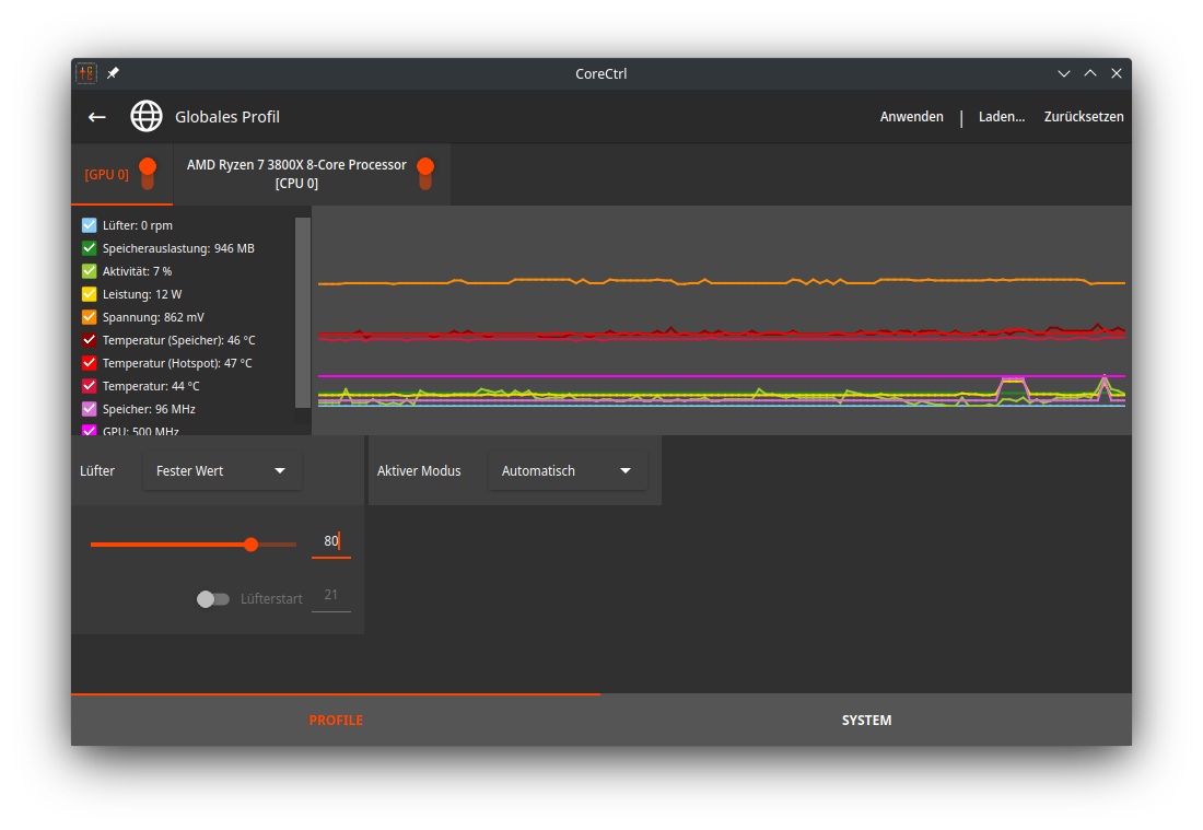 Allerdings wenn ich die Lüfterkurve ändere kann ich keine Veränderung der Drehzahl ablesen oder hören.