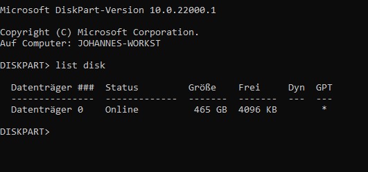 Jetzt ist die M.2 SSD weder im BIOS noch unter WIN zu finden (anbei Screenshot Diskpart).