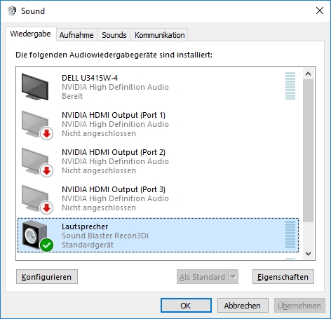 Wenn ich unter Einstellungen meinen Lautsprecher aktiviere und auf "konfigurieren" klicke, kann ich im folgenden Dialog testen.